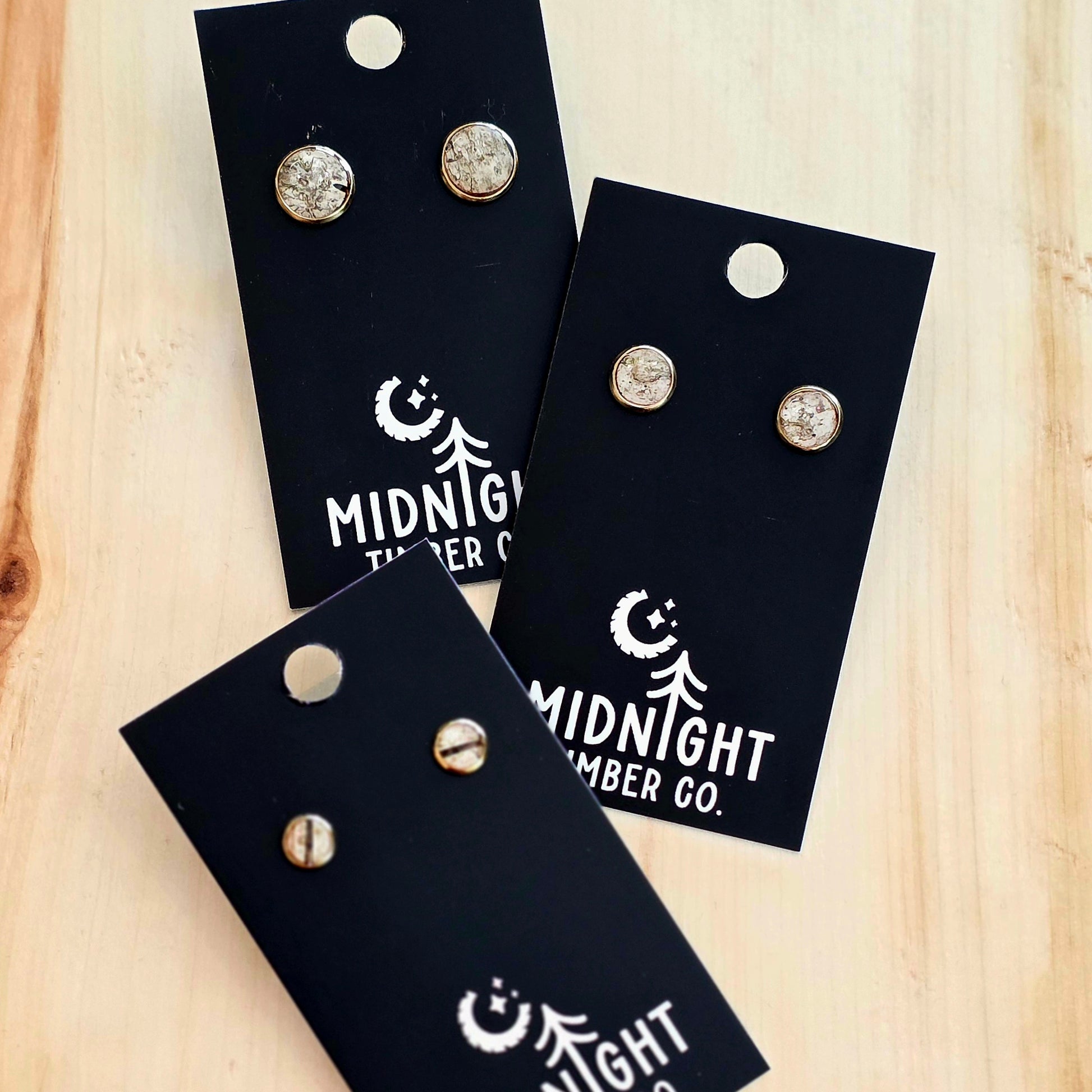 Gold-plated stainless-steel stud earrings with natural Birch Bark in resin.
